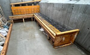 屋上の作り付け家具(ベンチ)もこの段階で打ちます。